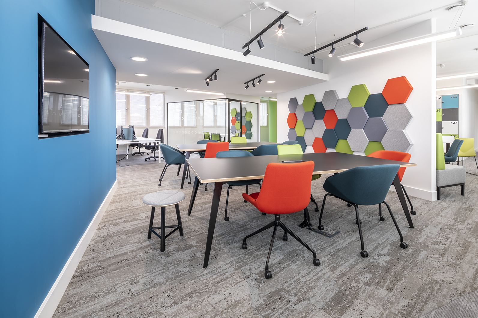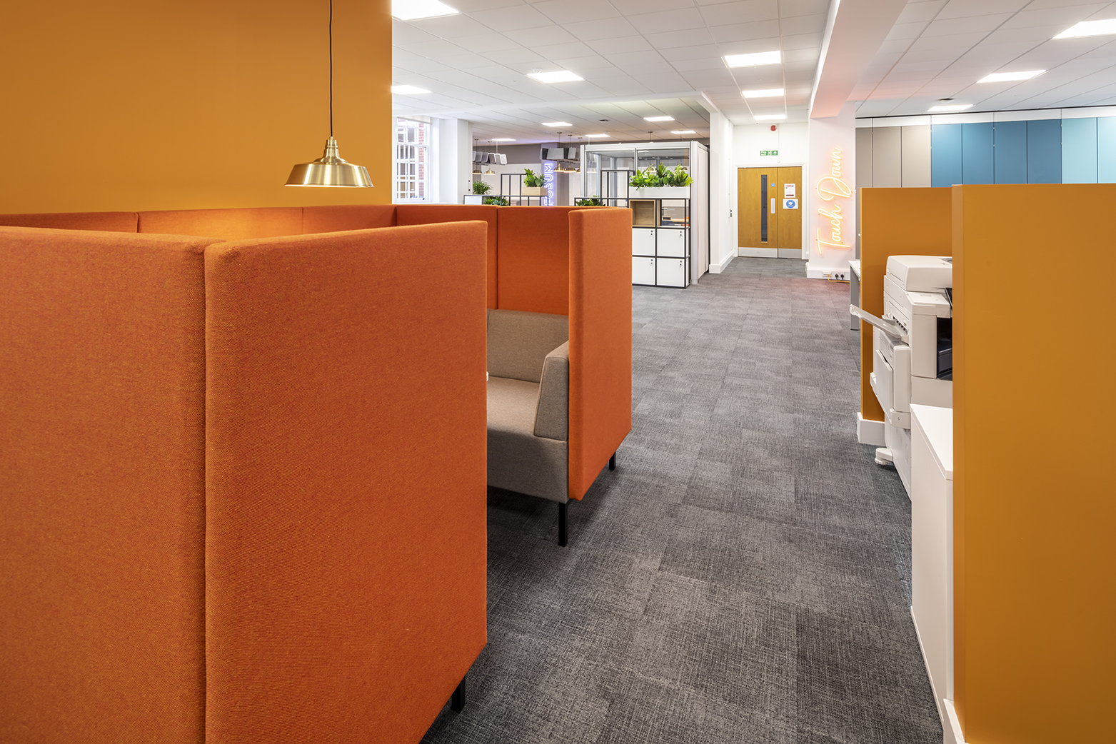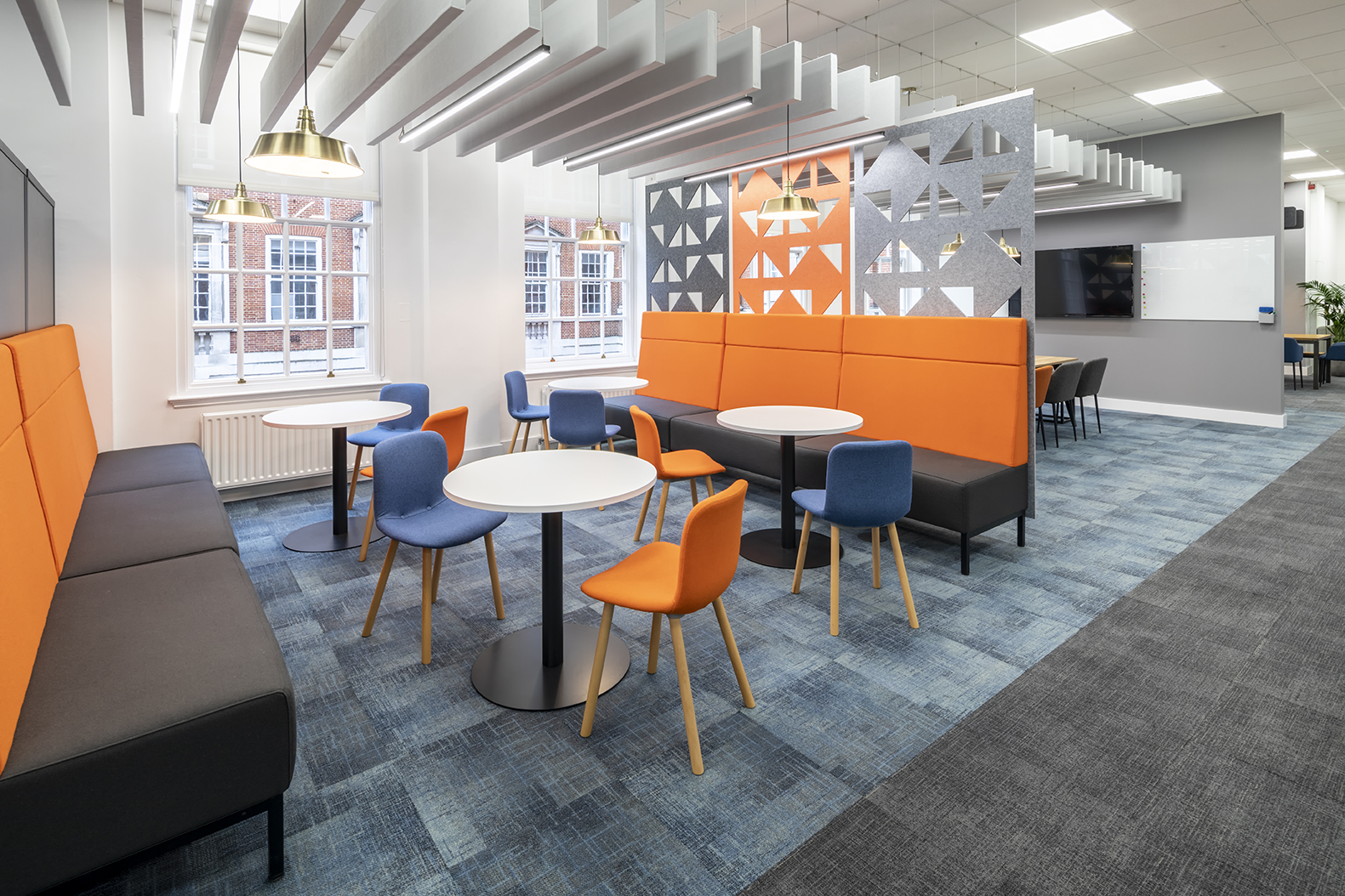 A commitment that is shown first in our planning. Where we look to incorporate a mix of collaboration hubs (theatre seating, breakout areas, sofa seating etc.) and quieter zones (separate booths, more partitioned work desks etc.).