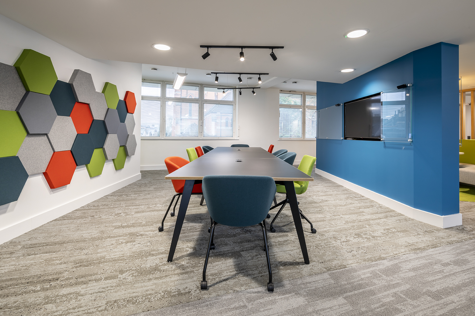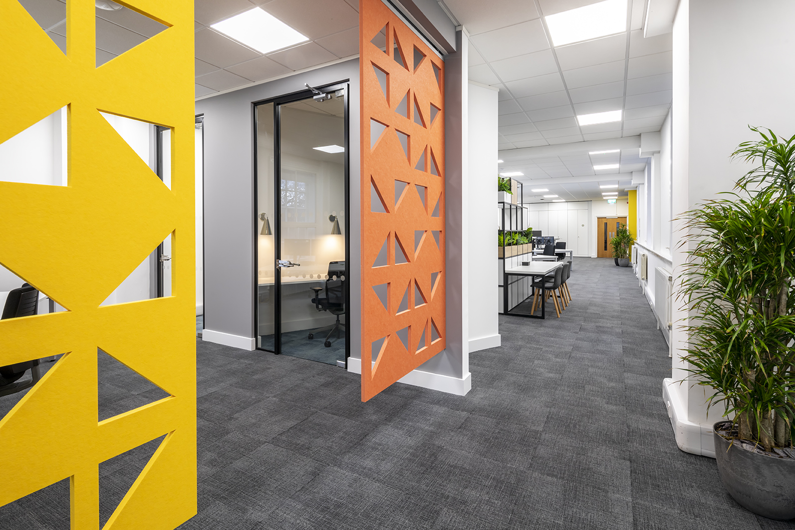 Another important aspect for productivity, and conducting meetings or sensitive conversations. Where acoustic treatments and sound masking help create a more intimate working experience.